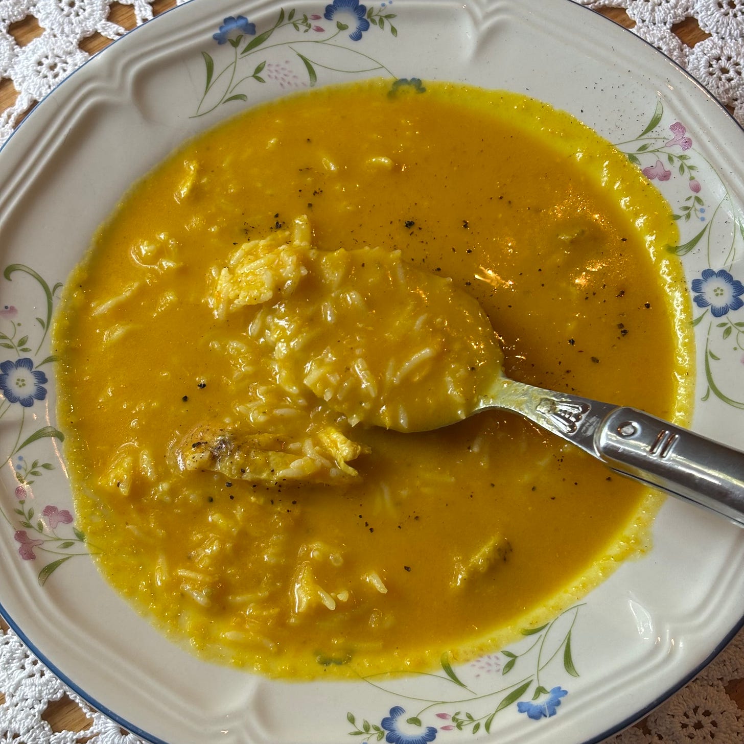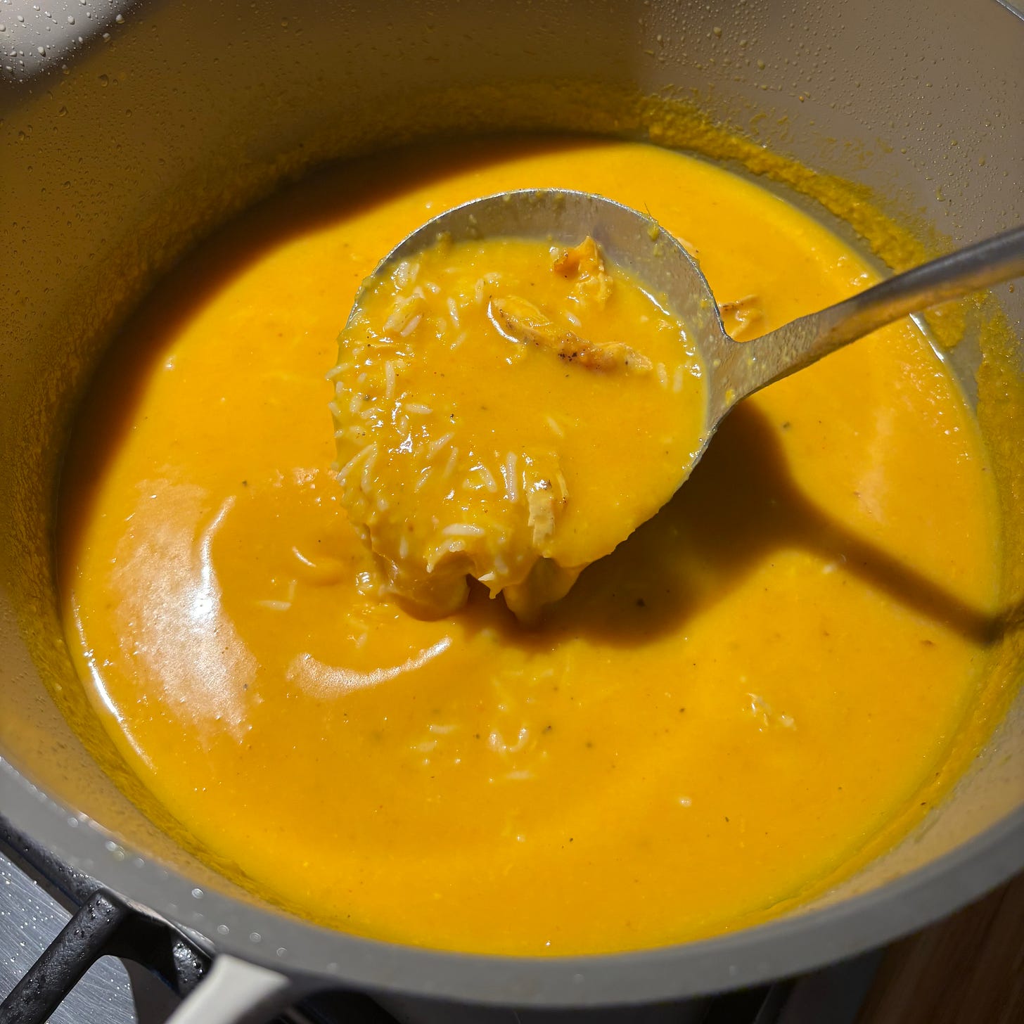 This recipe is a soup version of the juice bar wellness ginger shot. Fire-y and sinus-clearing and easy enough to make with your remaining two brain cells when you’re down bad with the flu. Featuring the main players in a flu-kicking storyline — ginger, turmeric, garlic, shallot, honey, lemon, chicken bone broth and black pepper. Everything is blended with an immersion blender directly in the pot, so a rough chop is perfectly fine.